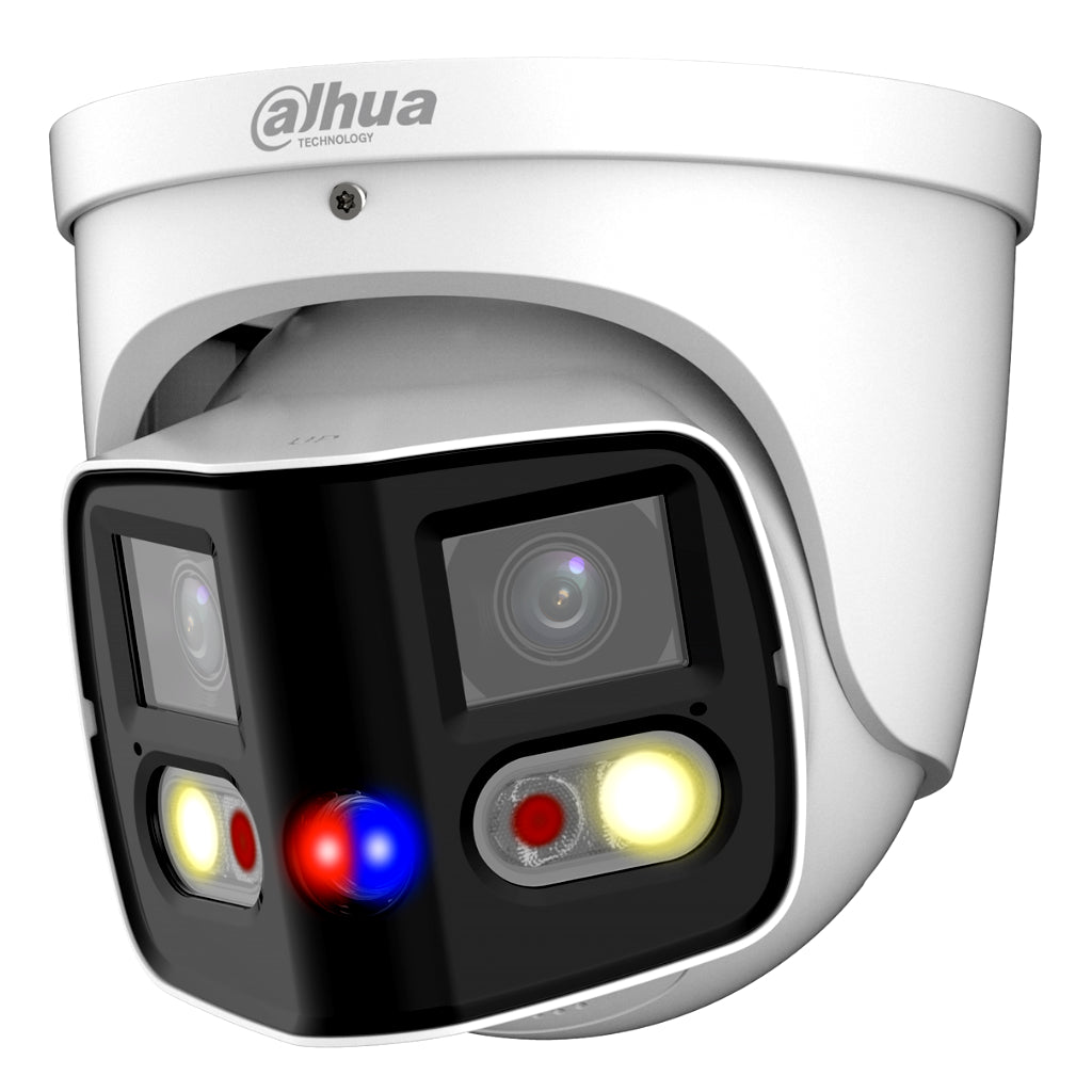 [IPC-PDW3849-A180-AS-PV] Domo IP H265 2x4M TiOC DUAL-LENS SPLICING FULL COLOR WDR Starlight LED25m/IR20m 2.8mm IP67 PoE SD AUDIO MIC E/S AI